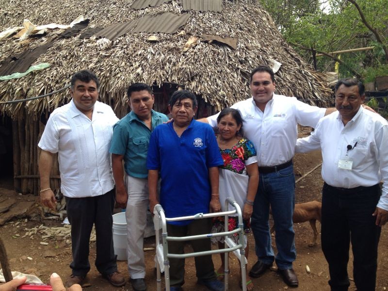 El delegado de la Comisión Nacional para el Desarrollo de los Pueblos Indígenas, Jesús Carlos Vidal Peniche visitó varias comisarías de la Ciudad de Valladolid donde entregó sillas de ruedas y burritos a personas con discapacidad y de escasos recursos.