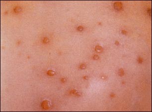 Señaló que la fiebre es el primer síntoma y puede ir acompañado por dolor de garganta. Posteriormente aparecen en el cuero cabelludo lesiones pequeñas de color rojizo que luego van creciendo y extendiéndose al resto del cuerpo que produce comezón intensa