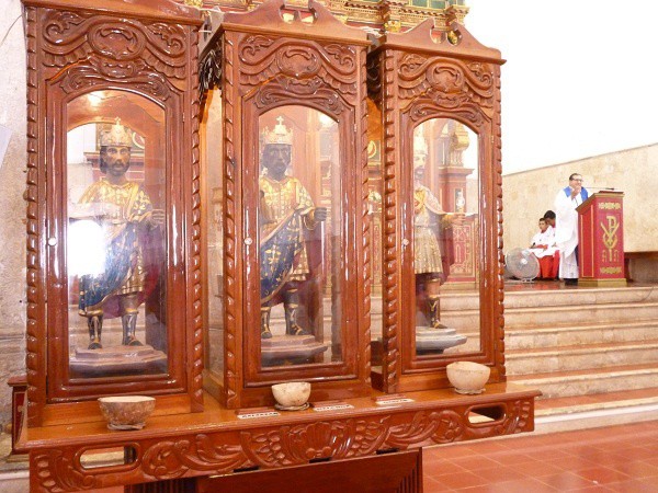 Bajan las imágenes de los tres reyes, en Tizimín