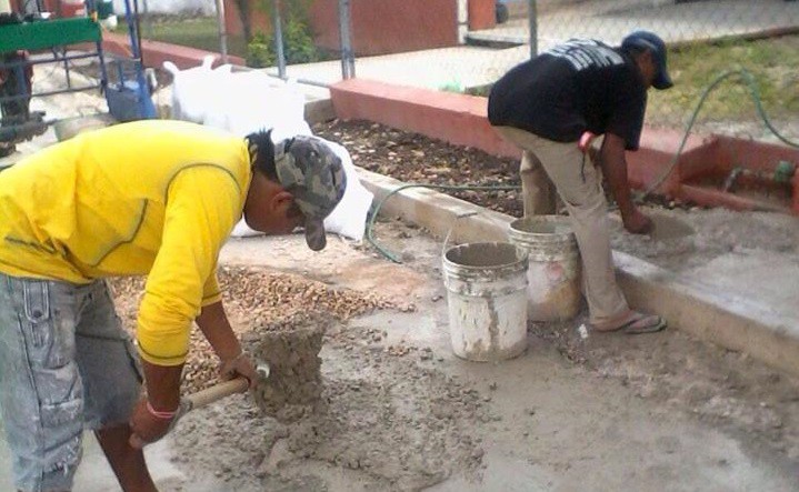 Con el fin de mejorar las instalaciones del Jardín de Niños “Cecilio Chi” de la Villa de Espita, el Ayuntamiento trabaja en la construcción de una banqueta a la entrada del plantel.