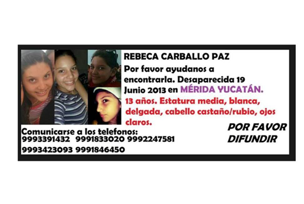Rebeca Carballo Paz tiene 13 años de edad desaparecio el pasado 19 de junio sus padres fueron por ella a la escuela y grande fue su sorpresa al no encontrarla en el plantel.