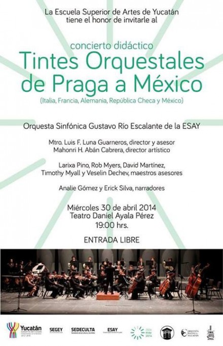 El concierto didáctico “Tintes orquestales de Praga a México” de la Orquesta Sinfónica “Gustavo Río Escalante” (OSGRE) y la narración de Erick Silva, además de la maestra Analié Gómez, se presentará este miércoles 30 de abril a las 19:00 horas en el teatro “Daniel Ayala Pérez”, la entrada es libre.