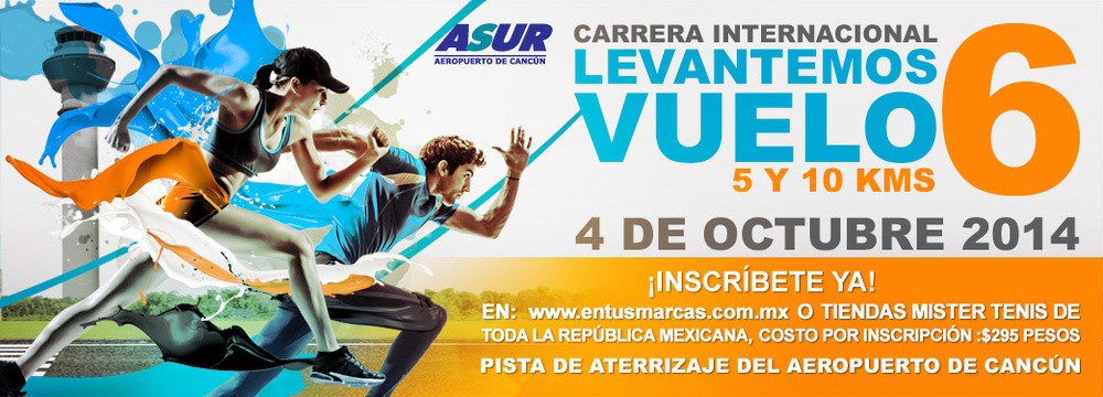 La carrera “Levantemos el vuelo” fue creada en el año 2009, desde entonces ha tenido gran aceptación y es uno de los eventos más esperados año con año. La competencia se realiza en la segunda pista de aterrizajes del Aeropuerto Internacional de Cancún.