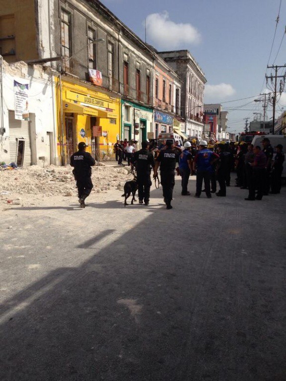 Hoy por la mañana se derrumbó parte de un edificio antiguo ubicado en la calle 54 por 65 y 67 del centro de la ciudad que estaba siendo remodelado, parte de la estructura se vino abajo dejando 16 personas lesionadas, 8 fueron trasladadas al hospital O’Horan. Entre los lesionados se encuentran 4 albañiles que trabajaban en la remodelación y 4 personas que estaban en el lugar entre ellas una mujer vendedora de pitahayas.