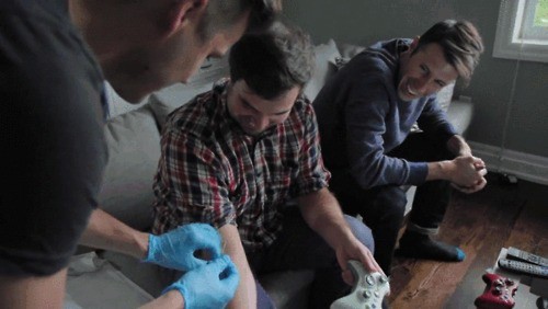 La empresa Brand & Grotesque en Canadá, desarrolló una herramienta llamada Blood Sport, la cual se conecta en cualquier consola con controles Rumble Pack a un sistema "de acopio de sangre". El Rumble Pack produce una vibración en ciertas situaciones como cuando se dispara un arma potente o se recibe un disparo con la intención de sumergir al jugador en la acción. Este sistema utiliza un hardware que, cada vez que el control vibra durante un videojuego, envía una señal a una aguja intravenosa colocada en el brazo del jugador para succionarle sangre. El sistema se bloquea cuando cualquiera de los jugadores han terminado de donar sangre. Los creadores de esta innovada herramienta esperan callar a los posibles críticos de su invento.