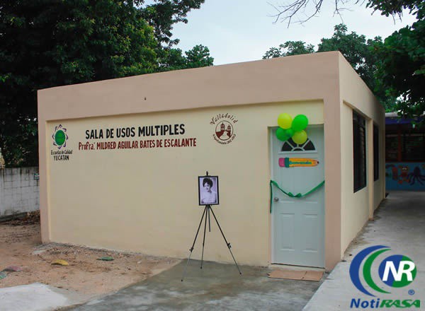 El nuevo salón lleva el nombre de la maestra “Mildred Aguilar Bates de Escalante”, en reconocimiento a su trayectoria e impulso a la cultura vallisoletana. Este espacio se pudo construir con la participación de la Secretaría Estatal de Educación, la Sociedad de Padres de Familia, el Club de Leones y el Ayuntamiento, a través del departamento de mantenimiento de edificios municipales, cuyo personal tuvo a su cargo toda la construcción.