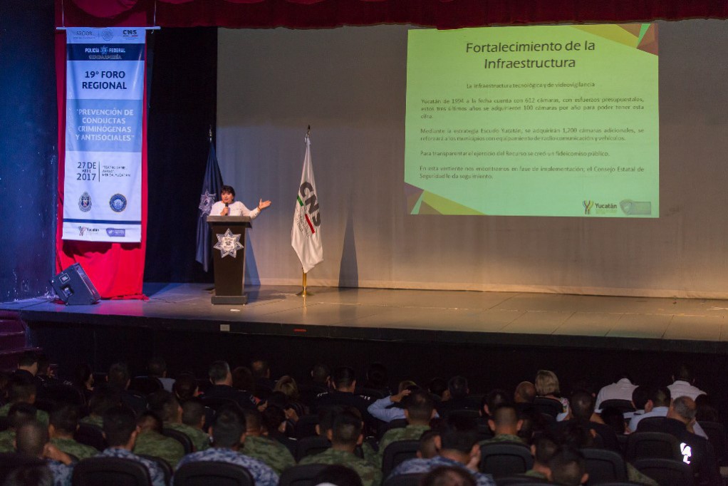Necesitamos que Escudo Yucatán se vuelva un modelo operativo, eficaz y eficiente de prevención integral, que pueda ser ejemplo a nivel nacional, así como efectivo en cada uno de los ámbitos de la sociedad, expresó la subsecretaria de Prevención y Seguridad Púbica, Martha Góngora Sánchez, en el 19° Foro Regional para la Prevención de Conductas Criminógenas y Antisociales.