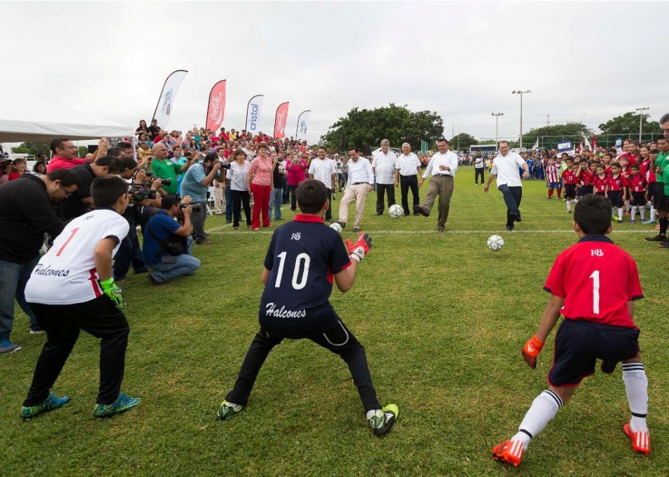 Al termino, el mandatario estatal se dirigió al centro de la cancha para dar la patada que marcó el inicio del torneo.