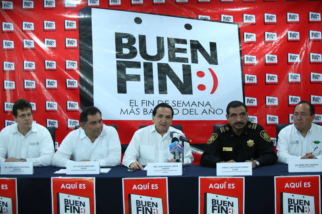 Este lunes, el titular de la Cámara Nacional de Comercio, Servicios y Turismo de Mérida, Canaco-Servytur, José Manuel López Campos anunció el operativo de vigilancia por el Buen Fin, acompañado del secretario de gobierno, Víctor Caballero Durán, el secretario de seguridad pública, Luis Felipe Saidén Ojeda y los titulares de Profeco y Condusef, José Nevárez Cervera y René Tun Castillo, respectivamente.