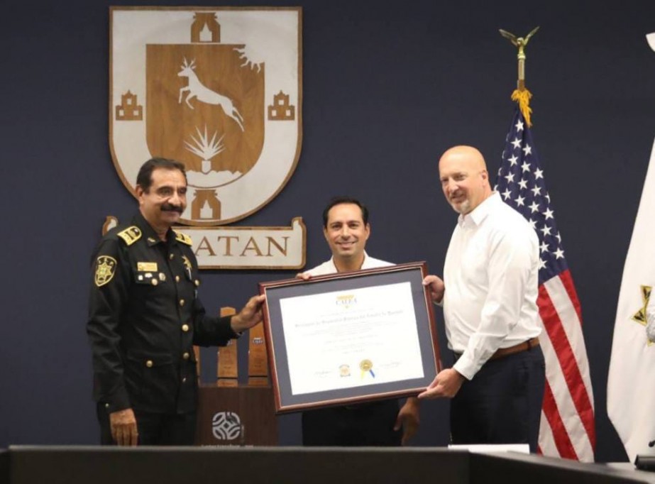 Con el acompañamiento de autoridades internacionales, este miércoles la Secretaria de Seguridad Pública de Yucatán recibió la certificación triple arco, la cual es entregada por la Comisión de Acreditación para Agencias de Aplicación de la Ley. En el acto que se llevó a cabo en la sede de la corporación, el gobernador Mauricio Vila Dosal celebró la noticia.