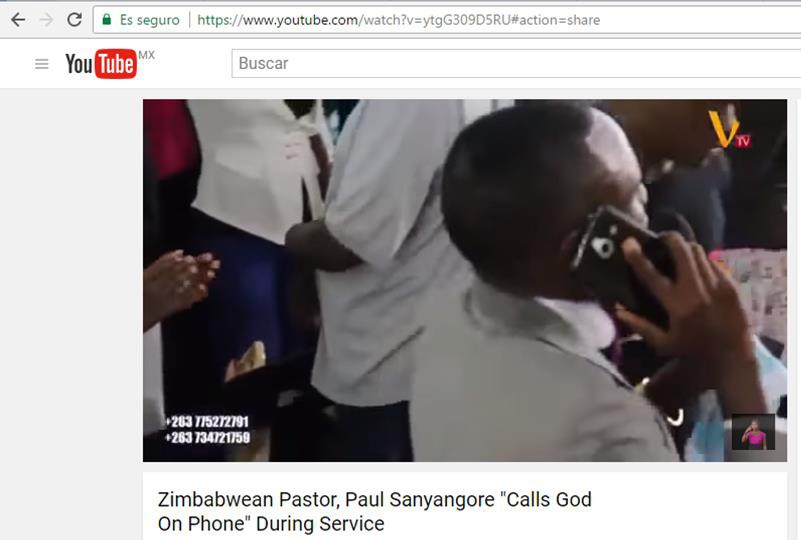 Como Paul Snyangore, un pastor de Zimbawe, África, quien asegura a los feligreses de la Iglesia Internacional de los Ministerios de la Victoria Munidal, solamente él puede hablar con el Altísimo.