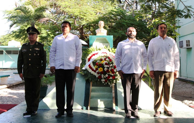 Al finalizar el acto protocolario, el mandatario estatal acompañado de autoridades civiles y militares depositaron una ofrenda floral y realizaron una guardia de honor en el busto erigido en recuerdo al investigador yucateco.