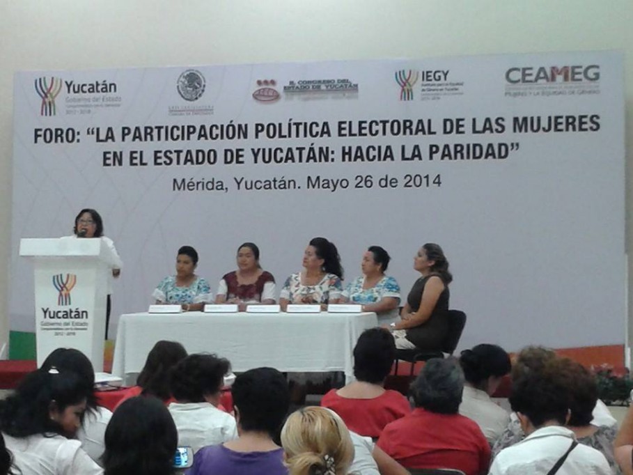 Este lunes re realizó el foro “La participación Política Electoral de las Mujeres en el Estado de Yucatán hacia la Paridad” en la que participaron mueres distinguidas en esta área, de diversas partes del país quienes vinieron a compartir sus experiencias y expectativas, de camino a las próximas elecciones, cuando se hará efectiva la nueva reforma de ley, que asegura que al menos la mitad de los puestos a elección sean ocupados por mujeres, indicó la Directora del Instituto para la Equidad de Género en Yucatán, Paulina del Rosario Cetina Amaya.