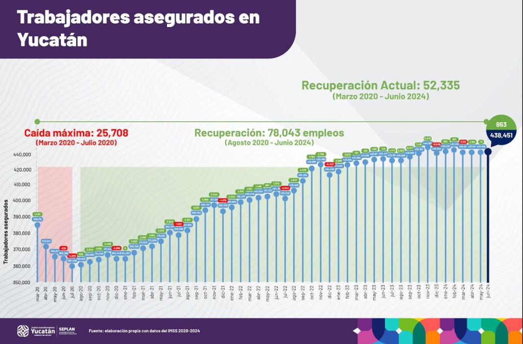 Cabe resaltar que, en Yucatán, desde mayo de 2021, se han registrado 38 meses consecutivos de crecimiento anual en los trabajadores afiliados al Instituto Mexicano del Seguro Social